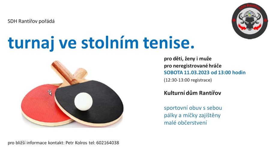 2023_03_Plakat_stolni_tenis.jpg11.3.2023 se v KD Rantířov koná tradiční turnaj ve stolním tenise.